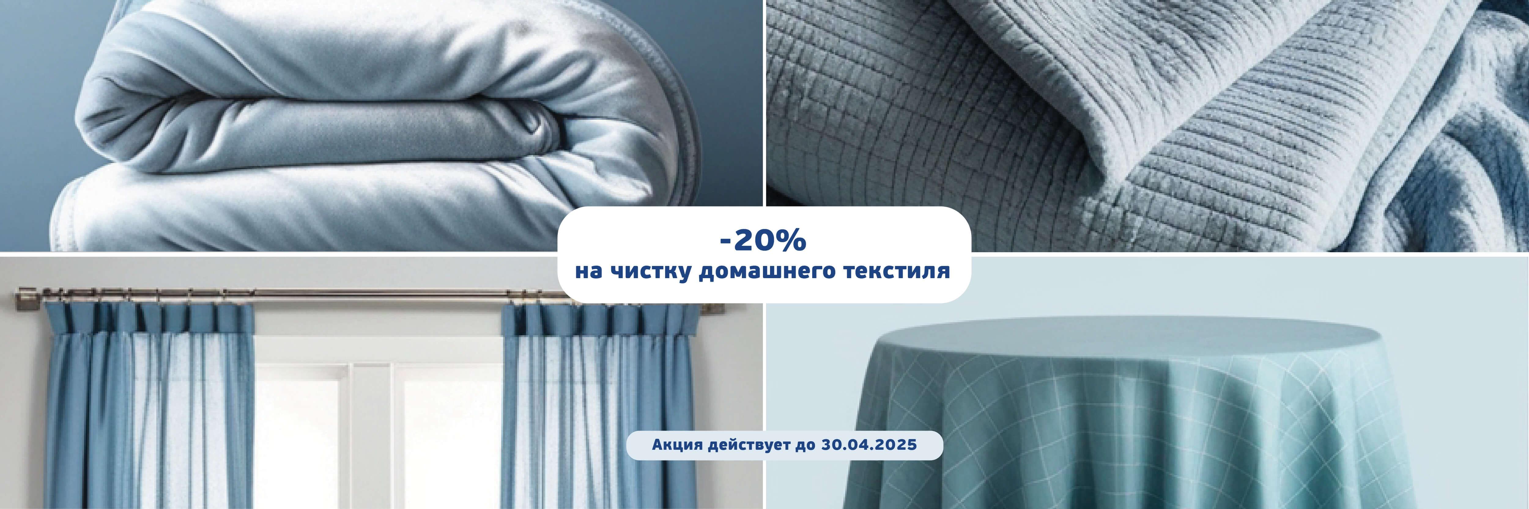 Воспользуйтесь скидкой 20% на чистку одеял, пледов, штор и скатертей — вещей, которые заслуживают обновления перед новым сезоном!